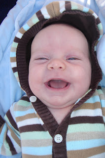 truman is doing great though, despite his aversion to lengthy sleeping. he is super smiley and has started to laugh. he loves to move, kick, and squirm. he doesn't even seem to mind bathtime anymore. all in all, he is a good little baby and i just can't get enough of the little guy. his smiles make me melt and i will do anything to make him happy.
